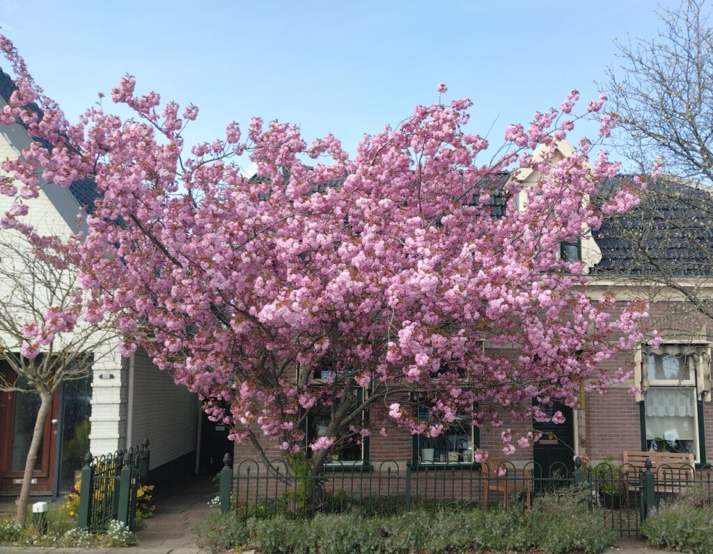 De trots van de voortuin bloeit weer. We zien zoveel mensen foto’s maken dat de boom op internet vast wel te vinden zal zijn.